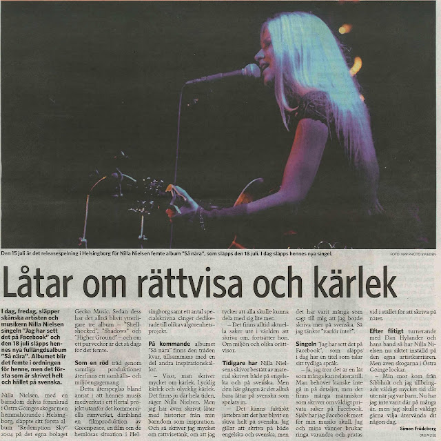 Nilla Nielsen släpper ny bok och nytt album (intervju, Helsingborgs Dagblad, 13 september 2016)